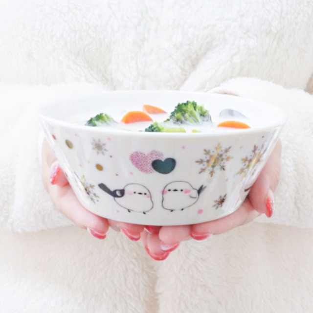 シマエナガさんの冬支度ボウル皿 数量1で1点です サラダ、シチュ−、カレ−、グラタンと使い道がたくさんあるボウル皿を作りました。 〜サイズ〜 口径13.5cm 高さ5.2cm 下底9cm 容量 満水430cc 〜デザイン〜 シマエナガさんの冬支度をイメージし、ほほを赤らめ寄り添い合う可愛いデザインいたしました。 雪の結晶はゴールド、シルバーをミックスし、 降る雪にはピンクも混ぜ合わせ可愛さをプラスいたしました。 食洗機可 電子レンジ可 〜素材〜 日本製 美濃焼 ୨୧┈┈┈┈┈┈┈┈┈┈┈┈┈┈┈┈┈┈୨୧ お誕生日プレゼントや普段使いとても使い勝手がいいお皿です 陶器は日本製の一つずつ手作りの高級美濃焼を使用しております。 一つ一つ手作りのため雪の結晶の配置が若干異なります。シマエナガさんのポーズも一つ一つ手作りのため異なります。 食洗機対応ですが、何年もお使いいただきたいためなるべく優しく手洗いをお願いいたします。 陶器の性質上黒点やピンホールなどがある場合がございます。どうしても陶器を作る上で発生してしまうものです。ご使用に問題がない場合はそのまま良品として絵付けをさせていただいております。 隠れる場所はなるべく絵で隠させていただいております。ご理解のほどお願い申し上げます。 よろしくお願い致します。