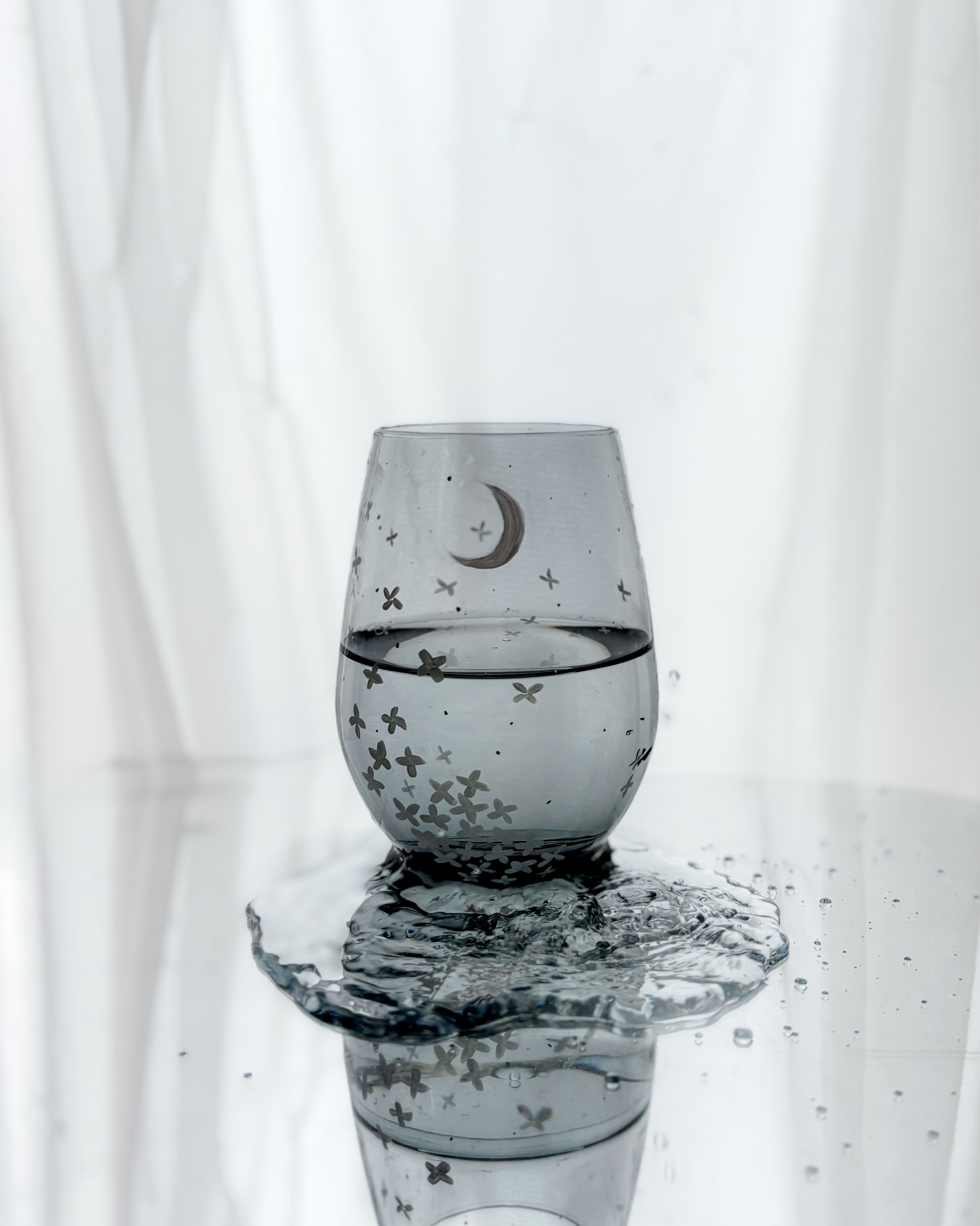夜空に咲く銀木犀と、静かに輝く月を描いた「月夜の銀木犀グラス」。