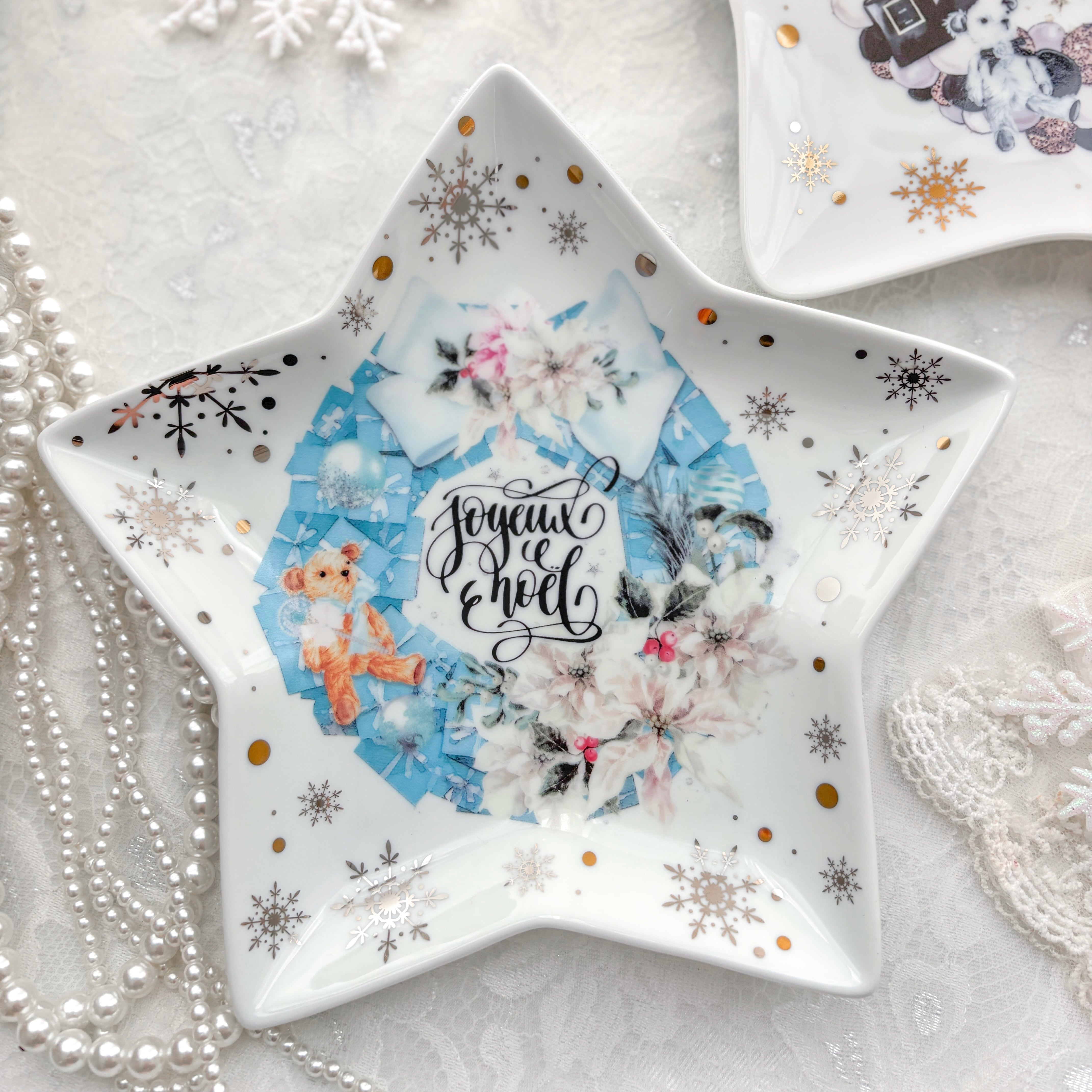 きらめく星型のプレートに、華やかなクリスマスリースを描いたホリデーコレクション。