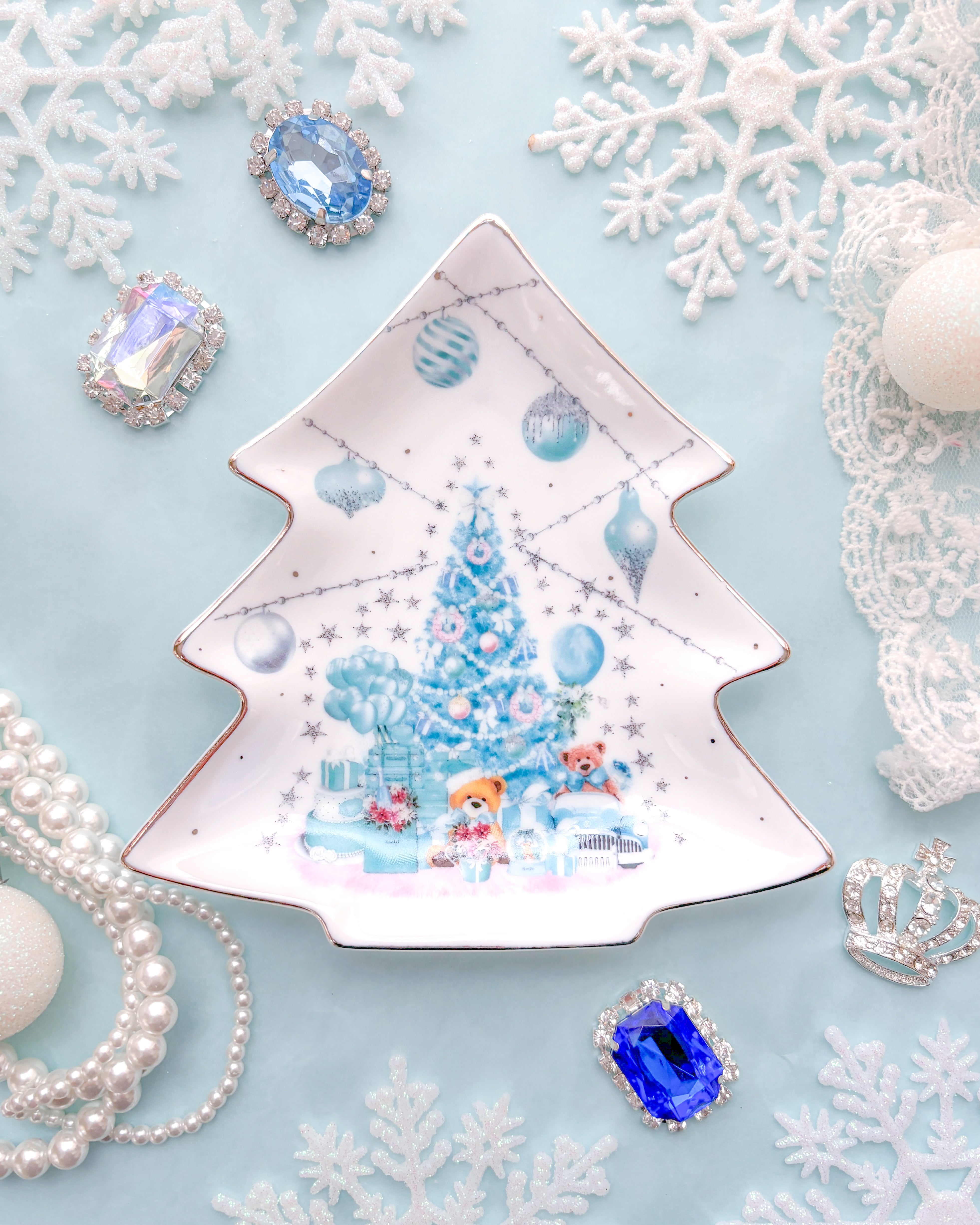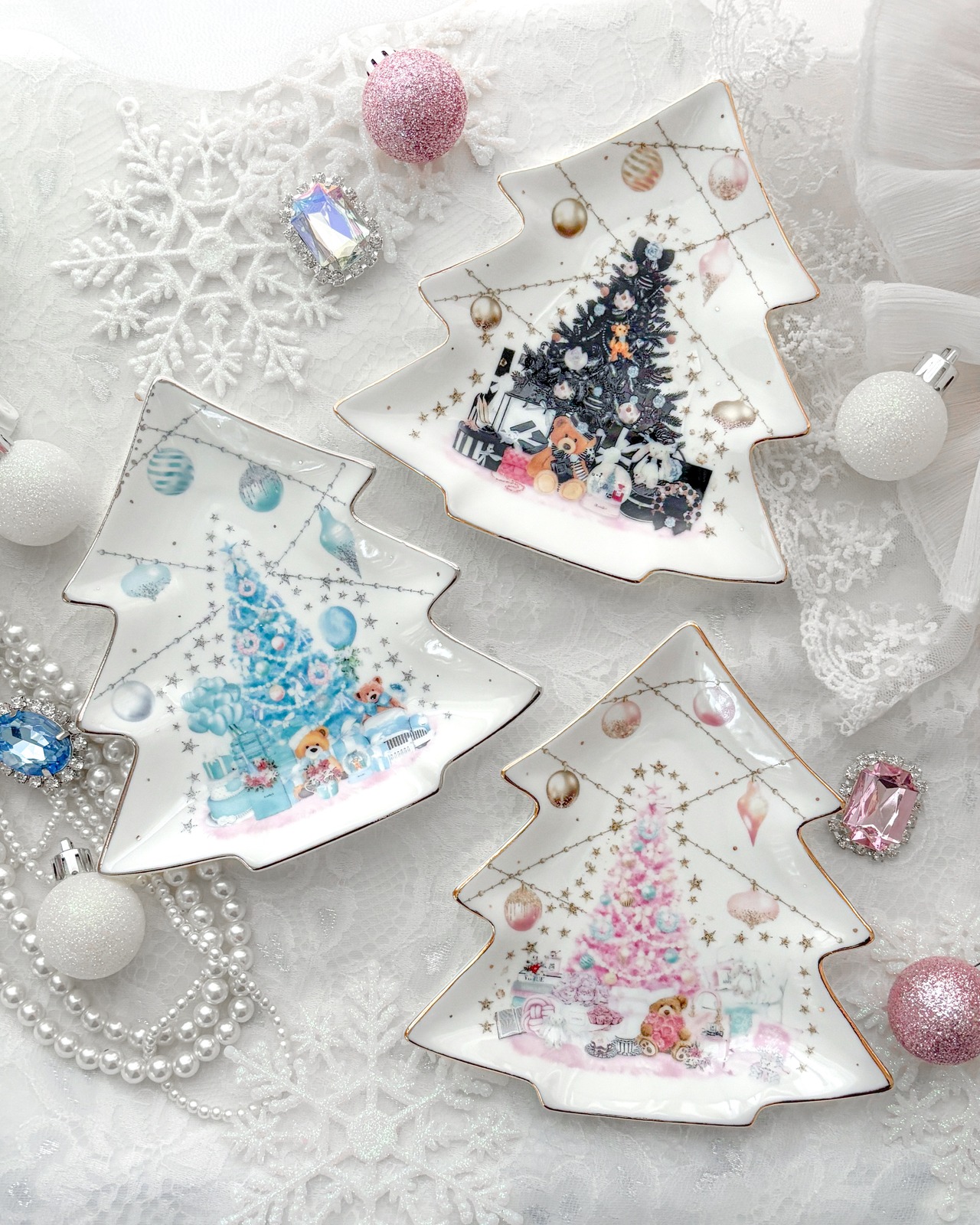 ふんわり輝くツリーの足元には、くまさんやプレゼントたちが並び、