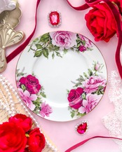 永遠に咲き誇る薔薇を描いた、優雅で華やかなプレートです。