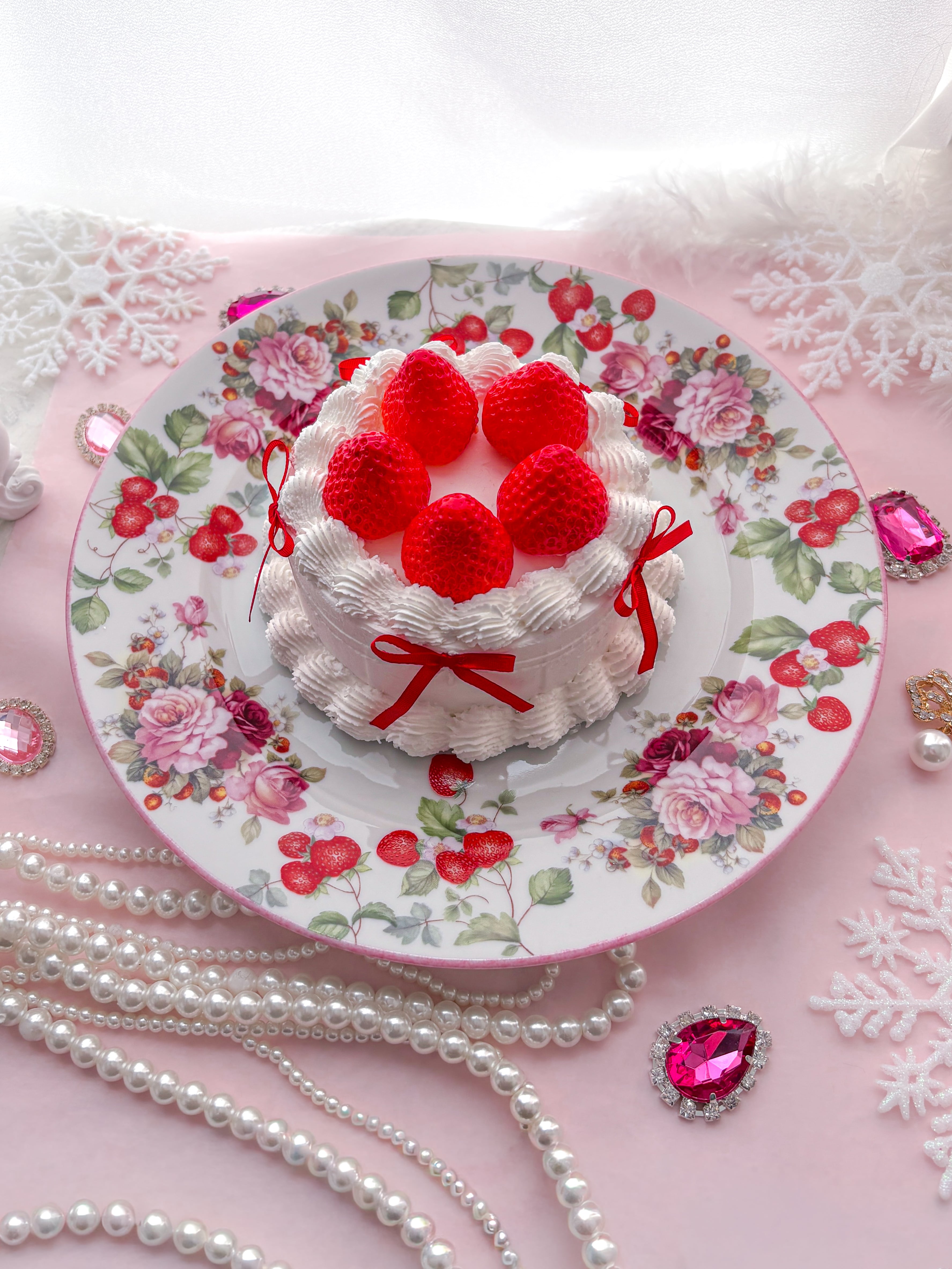 苺の赤とバラの優雅さがあふれるデザインは、