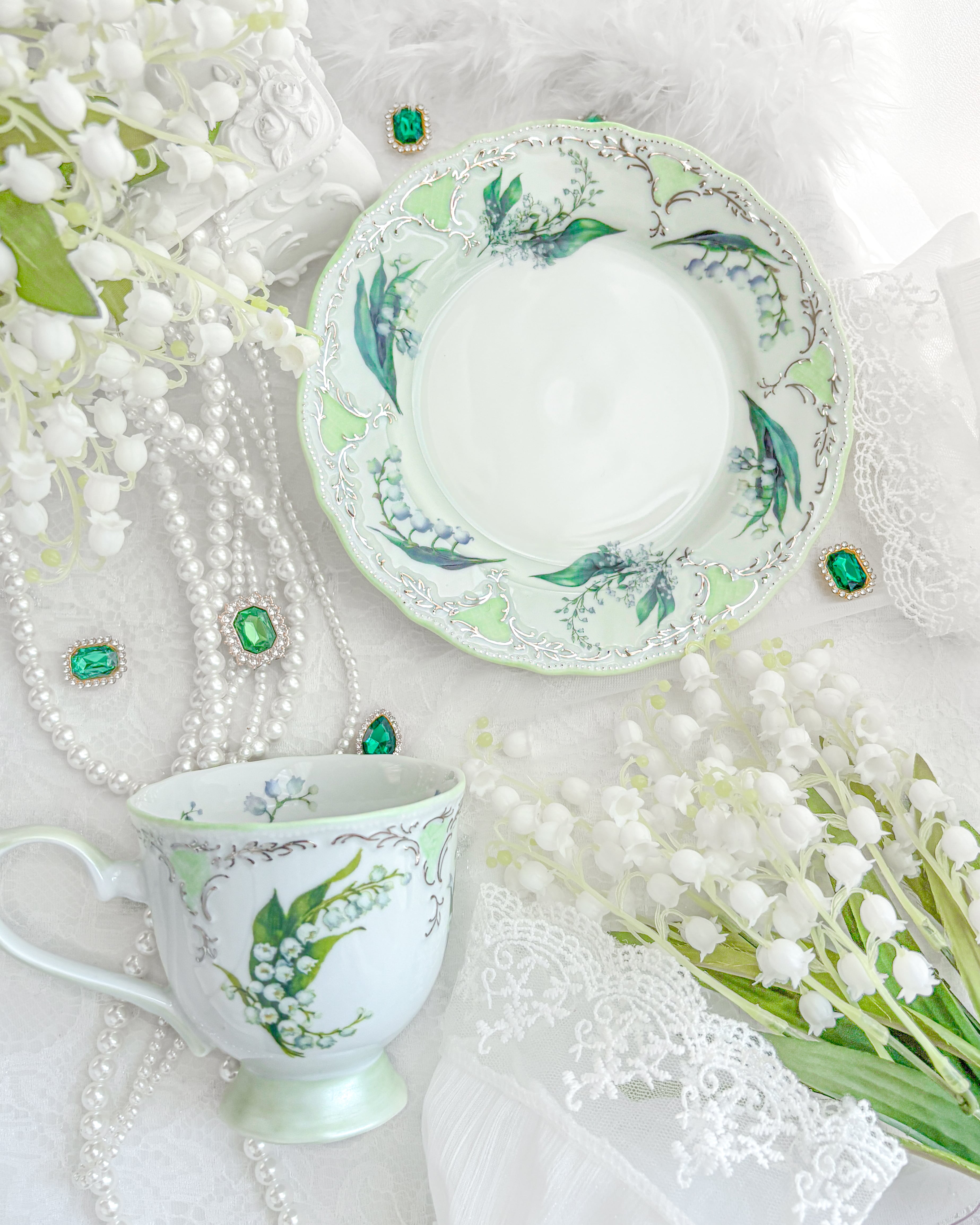 可憐な白い鈴蘭の花をあしらった、エレガントなお皿です。
