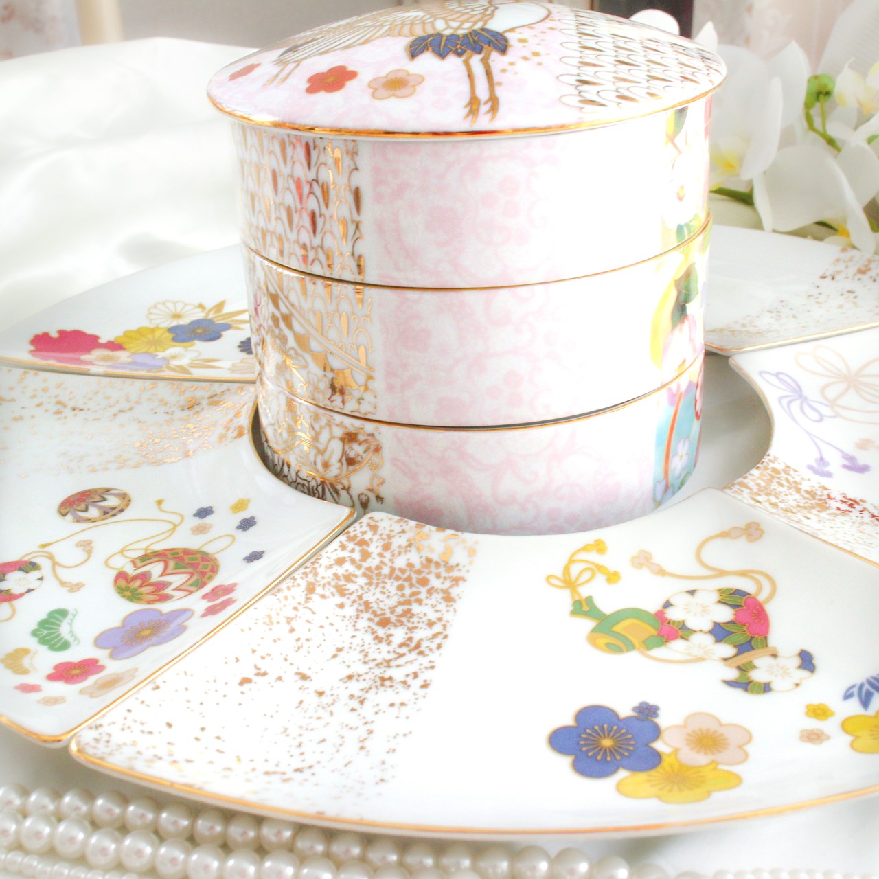 3段重箱で素敵なお節料理や、お料理のお供に食卓を華やかにしてくれます。