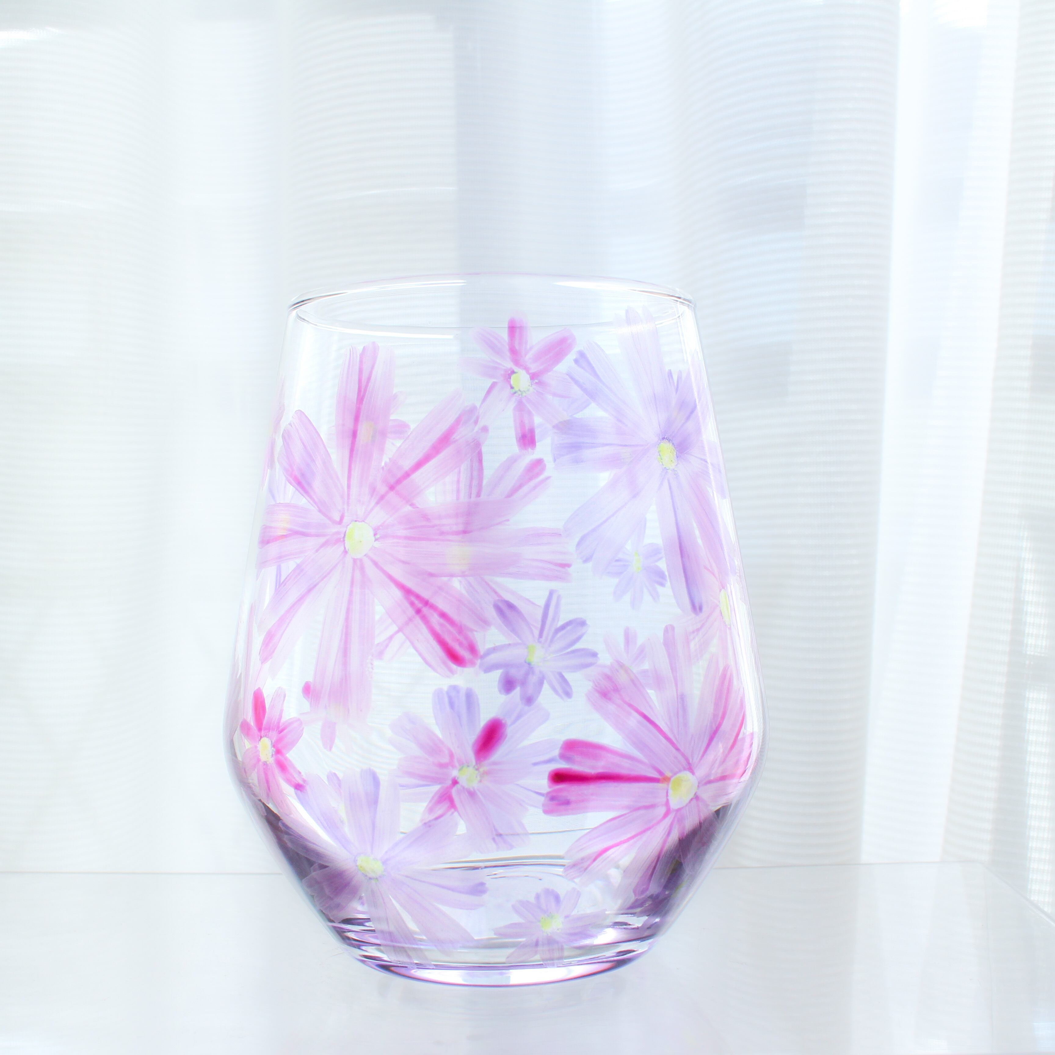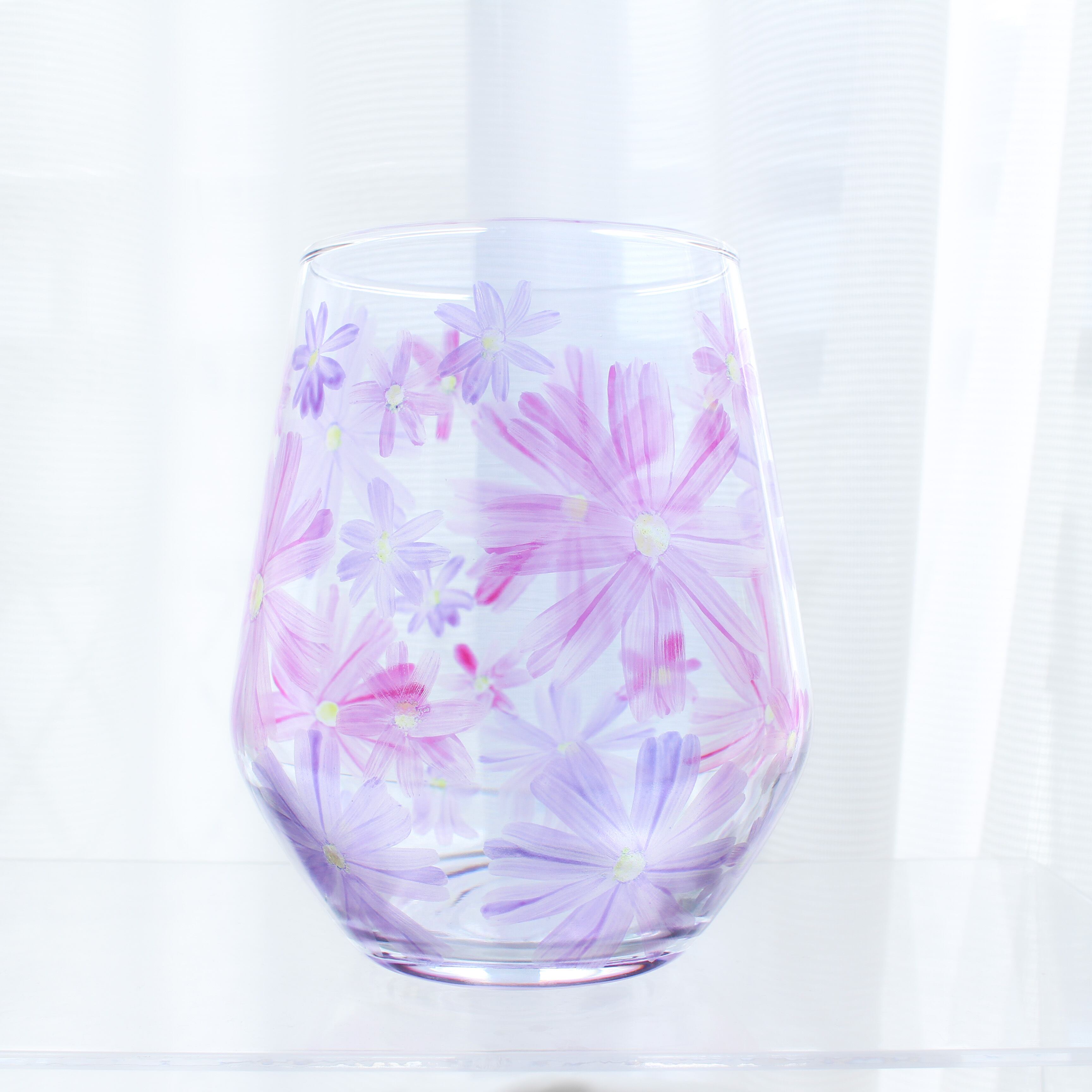 グラスに絵付けをし600℃で1日かけて焼き上がております。