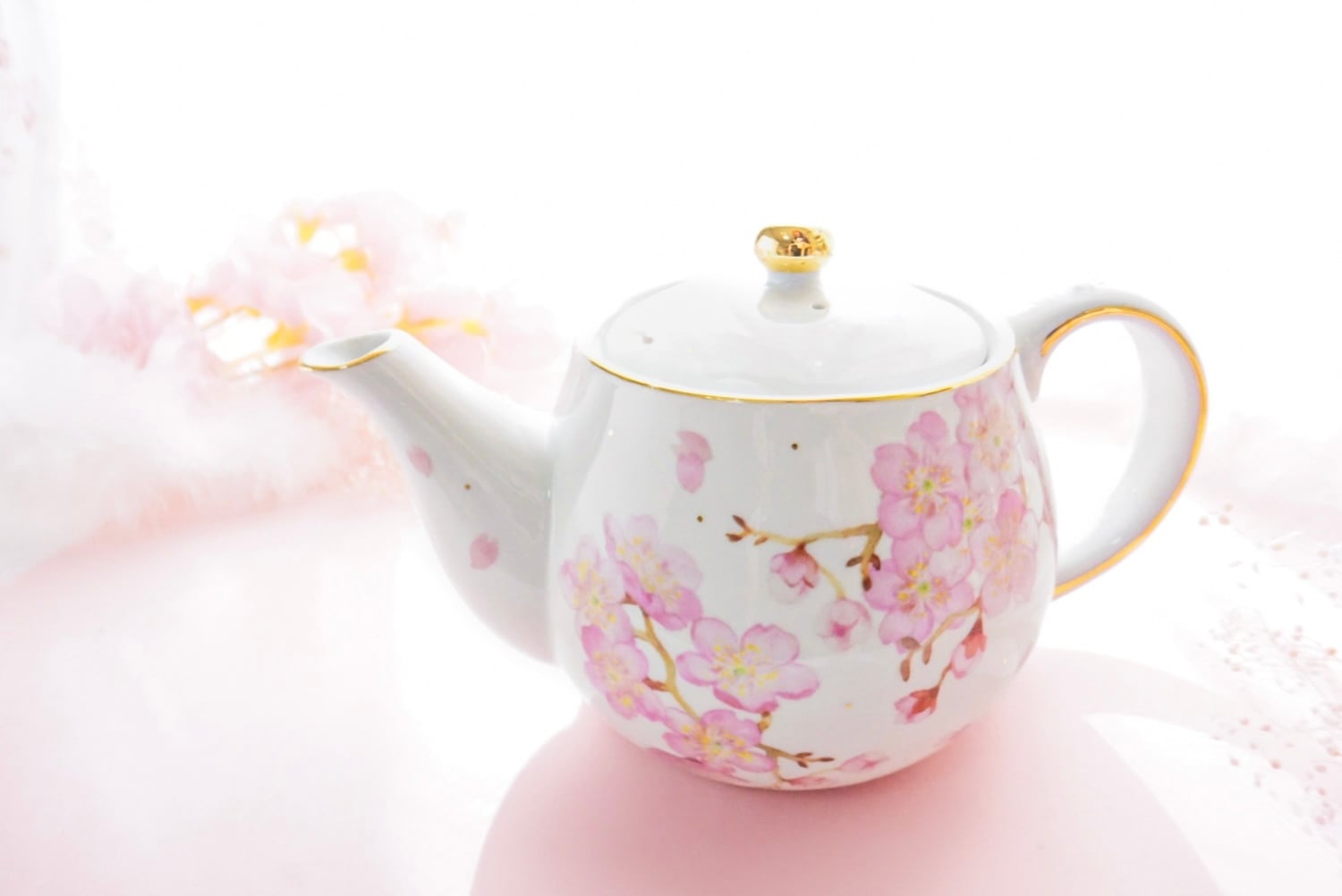 本金を使用して光り輝く美しいラインを注ぎ口、持ち手、桜の花びらのあいだにドットで入れました。