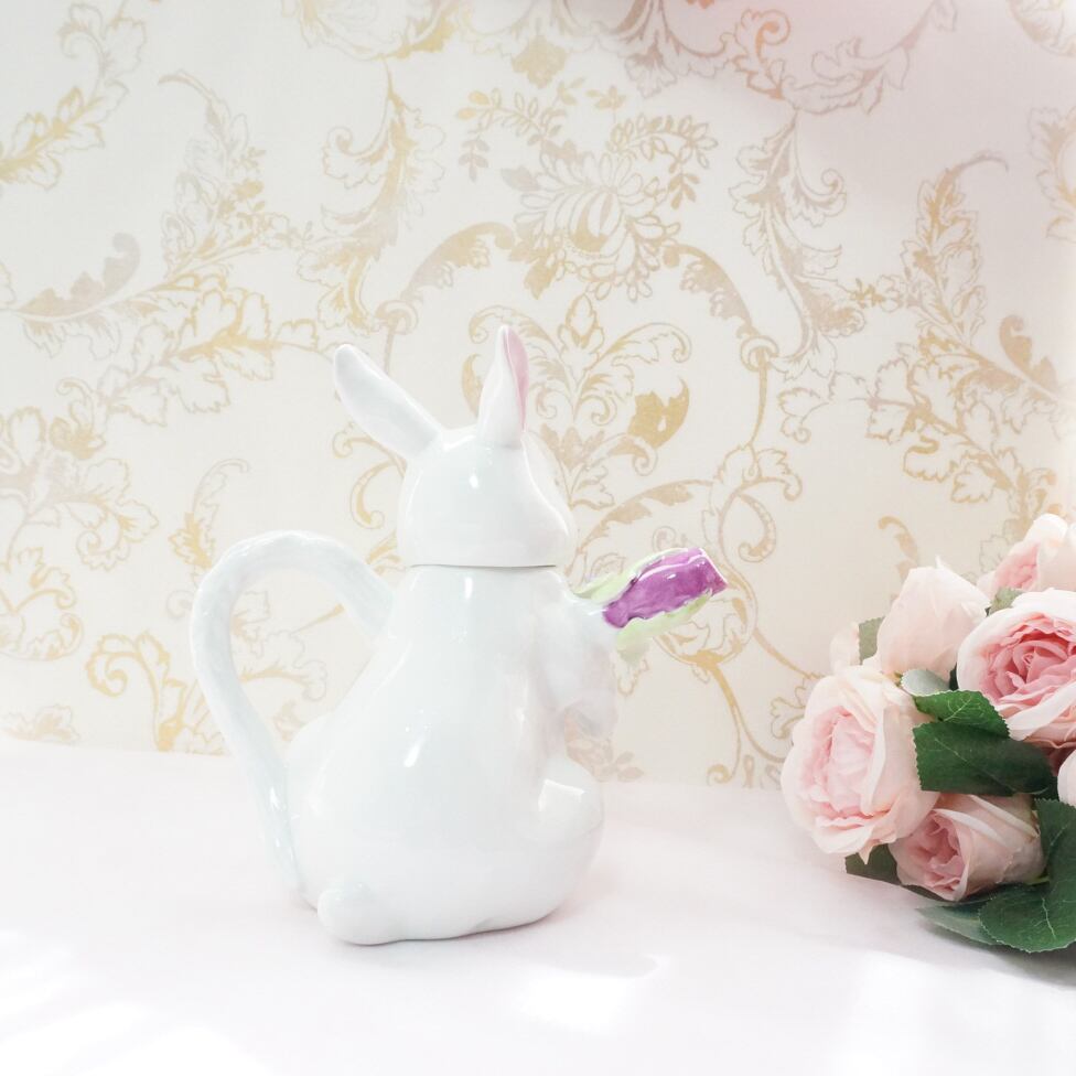 世界に一つだけうさぎさんの花束ティーポット〜紫陽花パープル〜