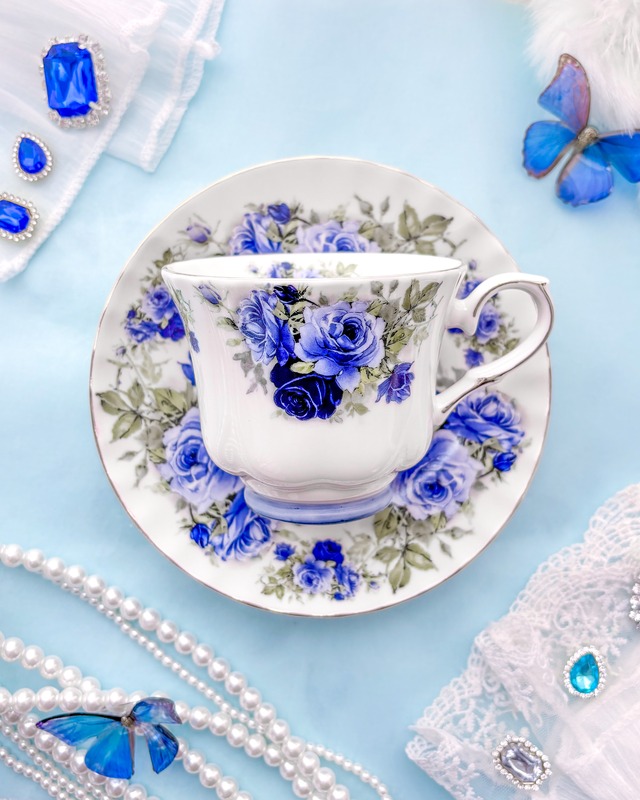 【エターナルローズ〜蒼き記憶の庭〜】 深く澄んだロイヤルブルーと、 そっと寄り添うように咲くライトブルーの薔薇。 時間さえも静かに溶かしてしまうような、 気品あるブルーグラデーションが魅力のカップ&ソーサーです。 光の角度によって表情を変えるブルーローズは、 まるで物語の中の“永遠の庭園”を閉じ込めたかのよう。 上質なティータイムを演出してくれる、特別なひと品です。 紅茶・ハーブティー・コーヒー、どんな飲み物とも相性が良く、 贈り物としても喜ばれます。 乙女心をくすぐるデザインは、お茶会や撮影小物としてもぴったり。 しっかりとした美濃焼のつくりで、見た目だけでなく実用性も兼ね備えています。 ティーカップ&ソーサー •容量:約180ml(満水時:約210ml) •カップ:約 直径8.9cm × 高さ7.4cm •ソーサー直径:約15.2cm ⸻ ご購入について •数量1でティーカップ&ソーサー1セットです。 日本製・美濃焼 電子レンジ不可、食洗機可 ひとつひとつ丁寧に手作業で仕上げているため、絵柄の配置や表情にはわずかな個体差がございます。世界にひとつだけの、あなただけの一客をお楽しみください。 ※ご用意できる数に限りがございます。気になる方はどうぞお早めに。