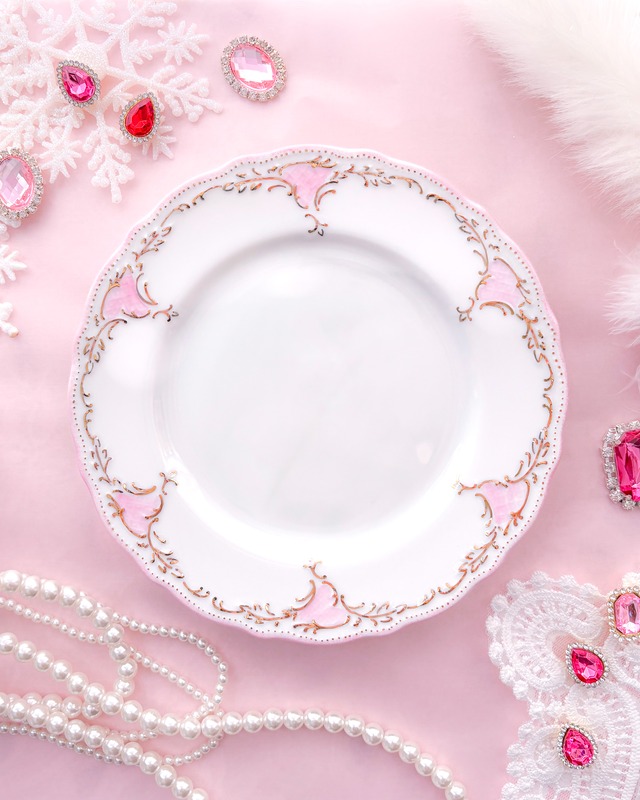 Strawberry Rose Plate – 甘くときめく苺とバラのティータイム いちごとバラが咲き誇る、特別なお茶会のためのお皿を作りました。 テーブルの上で物語がはじまるような世界観をお届けします。 苺の赤とバラの優雅さがあふれるデザインは、 アフタヌーンティーやケーキタイムにぴったり。 おうちでのひとときが、まるで洋館のサロンのように華やぎます。 15cm前後のホールケーキを乗せることができるお皿です 普段使いにはもちろん、ご自身へのご褒美や大切な方へのギフトにもおすすめです。 乙女心をくすぐるデザインは、お茶会や撮影小物としてもぴったり。 しっかりとした美濃焼のつくりで、見た目だけでなく実用性も兼ね備えています。 【サイズ】 • 23cm ※2枚重ねた比較写真はデザートプレートを重ねて撮影いたしました。 デザートプレートは別ページにございます。 【セット内容】 • プレート ×1 ※カップやポットのセットも販売中です。 より贅沢なお茶会をお楽しみいただけます。 日本製・美濃焼 電子レンジ可、食洗機可 ひとつひとつ丁寧に手作業で仕上げているため、絵柄の配置や表情にはわずかな個体差がございます。世界にひとつだけの、あなただけの一客をお楽しみください。 ※ご用意できる数に限りがございます。気になる方はどうぞお早めに。 ※ケーキ、紅茶は撮影備品の為付属ではありません。
