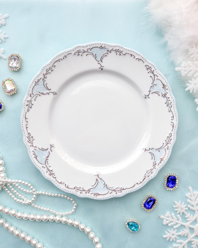 まるで宮殿のアフタヌーンティーに招かれたかのような、 気品あふれる時間をそっと閉じ込めました。 淡く澄んだブルーと、繊細に施されたレリーフ模様が織りなす佇まいは、 ヨーロッパのアンティークを思わせる上質な美しさ。 そっと置いたデザートや焼き菓子までも、まるで宝石のように引き立てます。 光を受けてふんわりと輝くシルエットは、 プリンセスドレスの裾が揺れるように優雅で、 日常のティータイムまでも、物語のワンシーンのように彩ります。 ⸻ サイズ ・直径:Ø16.7cm ・日本製 ・素材:磁器 ⸻ おすすめポイント ・ティータイムが一気にプリンセス気分に ・デザート・チョコ・焼き菓子が映える上品プレート ・淡いブルー×レリーフの組み合わせで写真映え抜群 ・ギフトにもぴったりな高級感のある佇まい